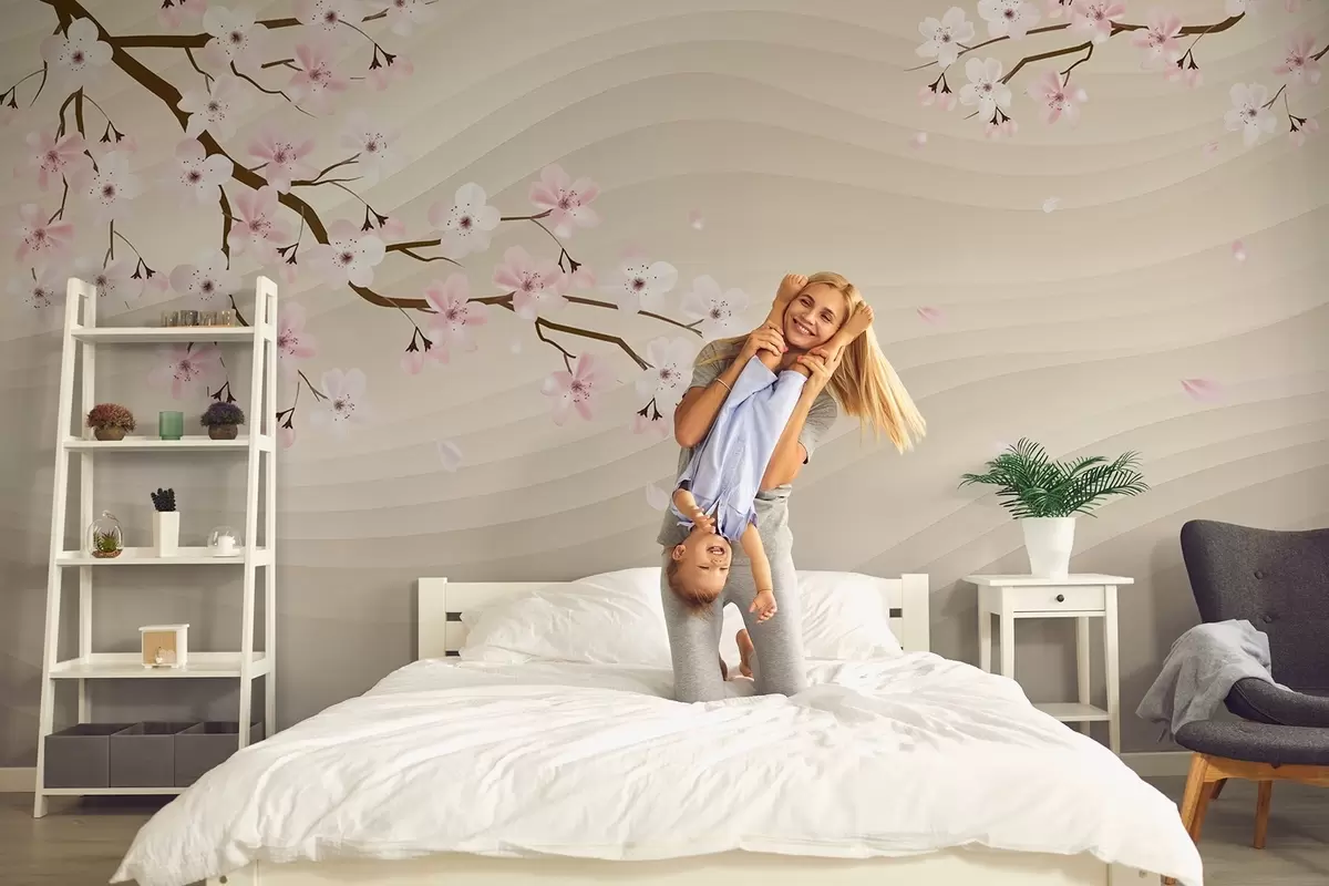 Fototapeter Sakura-grener på en bølgende sandbakgrunn Nr. w08959