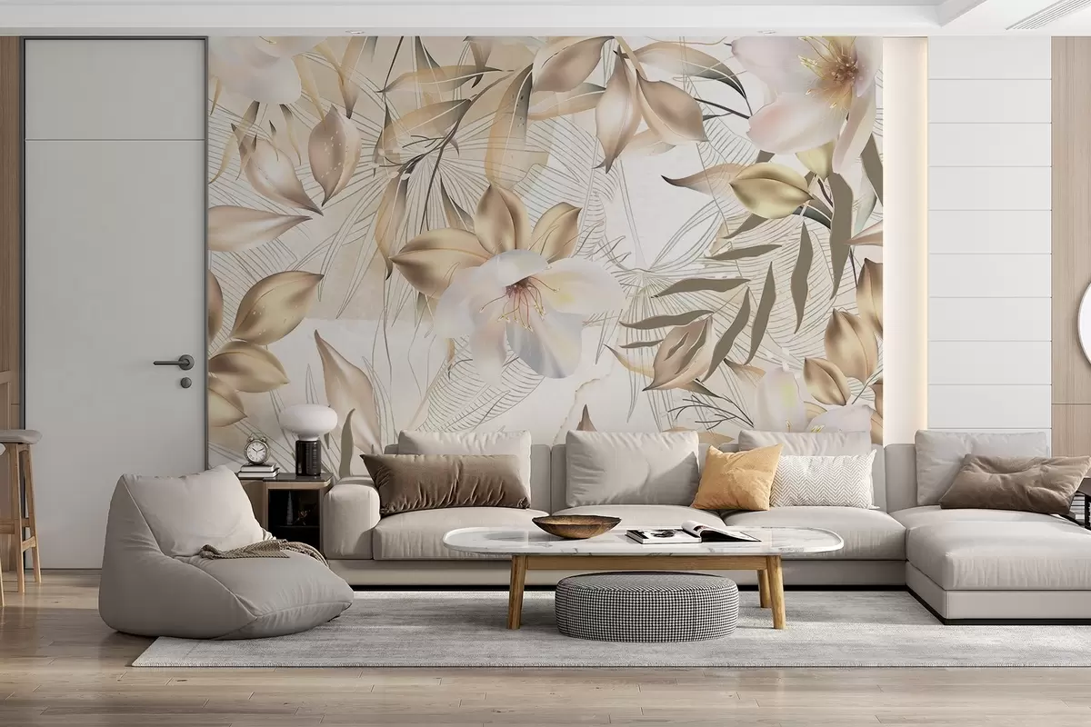 Fototapeter Jasminblomster og -blader, myke farger, botanisk illustrasjon, blomsterbakgrunn, elegant design, delikate kronblader Nr. w08977