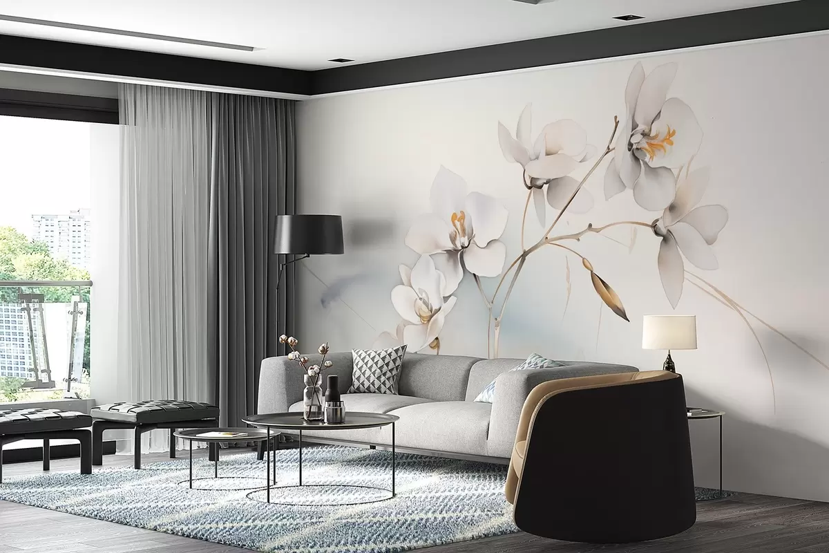 Fototapeter Hvit orkidegren i akvarellstil Nr. w09022