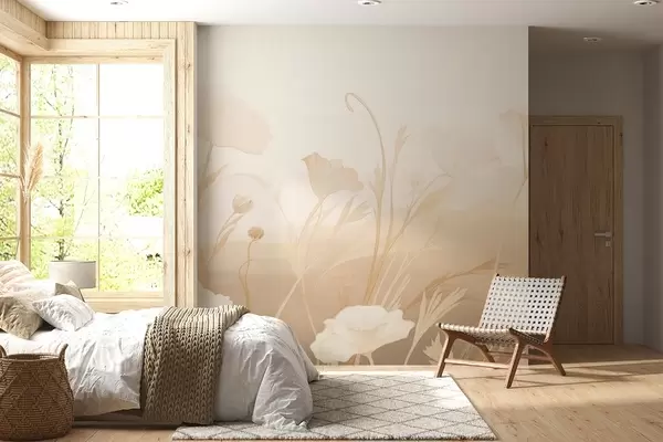 Fototapeter Hvite valmuer i beigegrå toner Nr. w09041