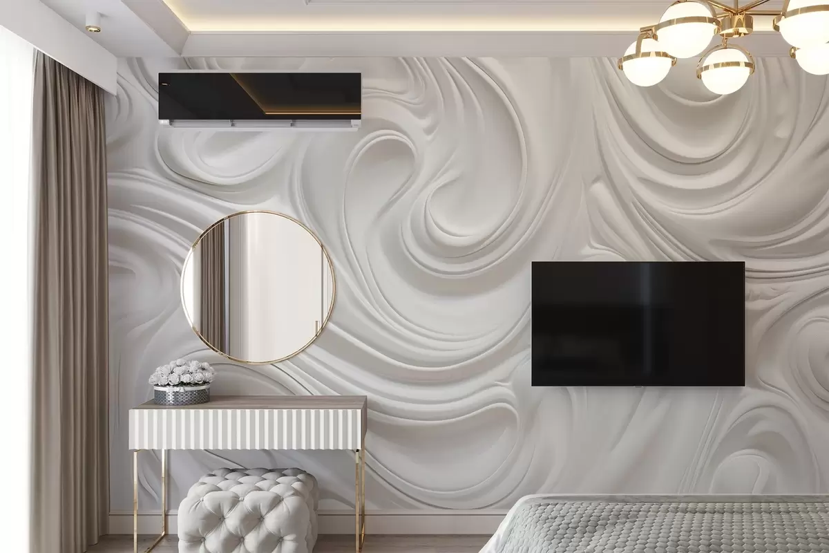 Fototapeter Hvit abstrakt moderne kunst med flytende virvler og bølger, glatt tekstur, elegant design, minimalistisk estetikk Nr. w09059