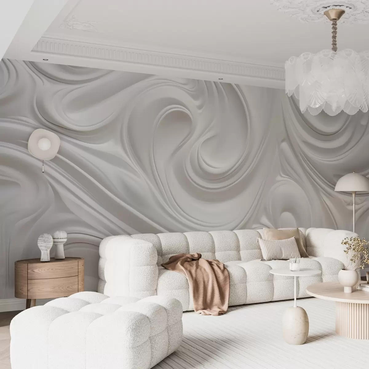 Fototapeter Hvit abstrakt moderne kunst med flytende virvler og bølger, glatt tekstur, elegant design, minimalistisk estetikk Nr. w09059