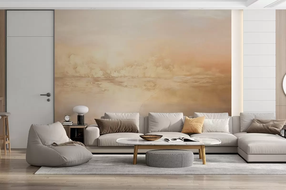 Fototapeter Abstrakt, strukturert landskap med varme farger, en myk og drømmende atmosfære og en blanding av oransje, gule og hvite fargetoner Nr. w09063