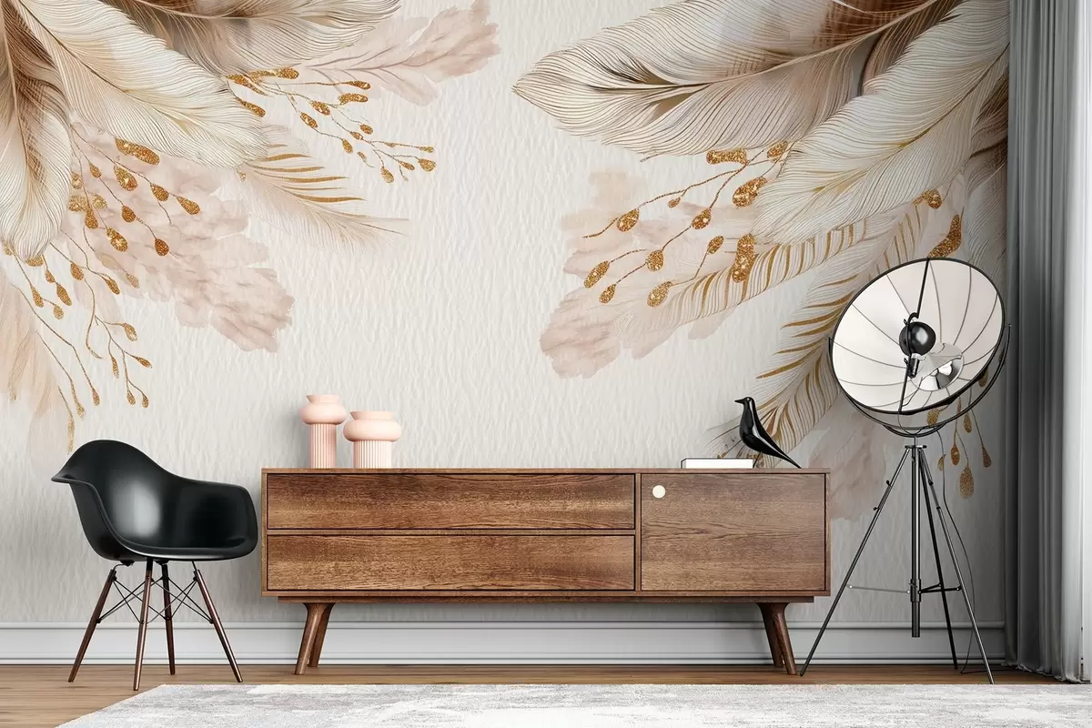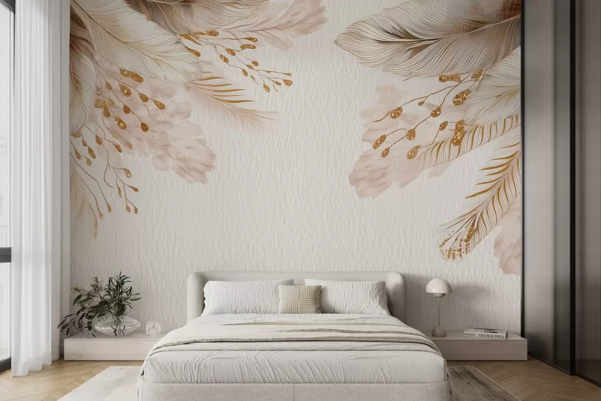 Fototapeter Pampasgress og fjær i akvarellstil i beige og hvitt på papir Nr. w09079