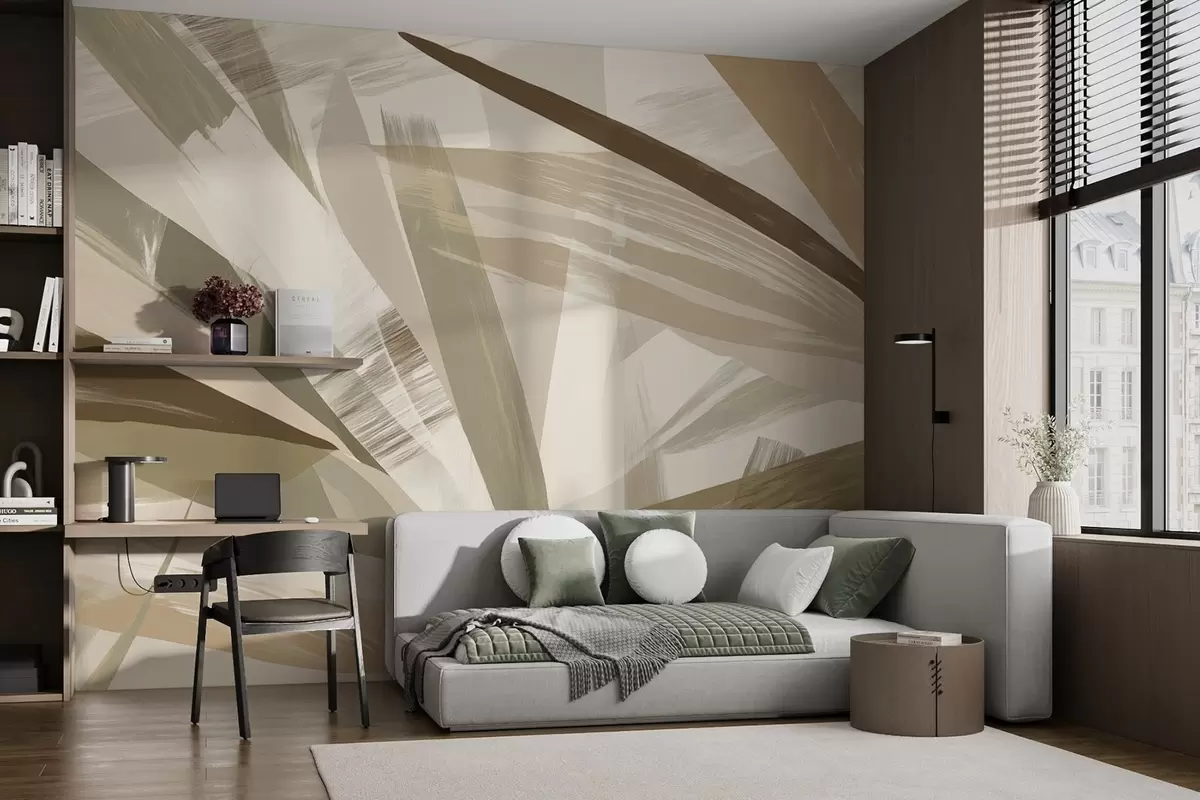 Fototapeter Abstrakte blader i grønne og beige toner Nr. w09091
