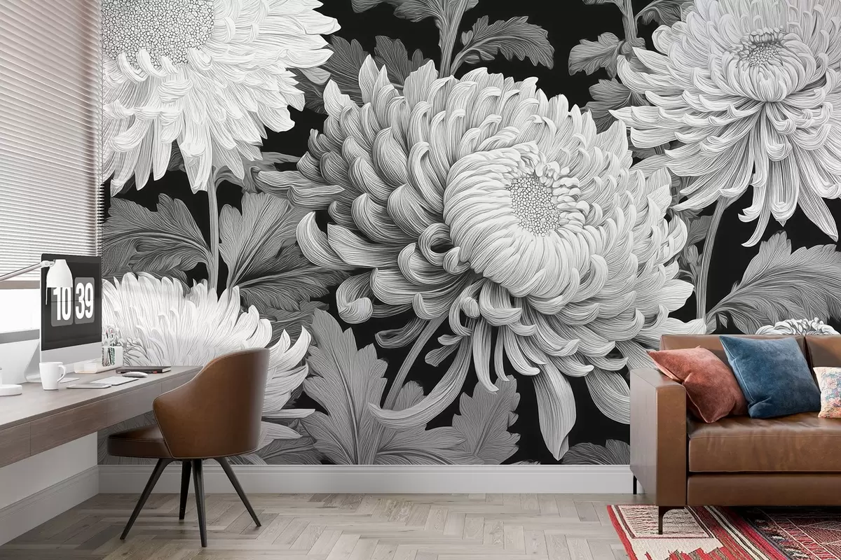 Fototapeter Sorte og hvite store orkideer med blader Nr. w09125v1