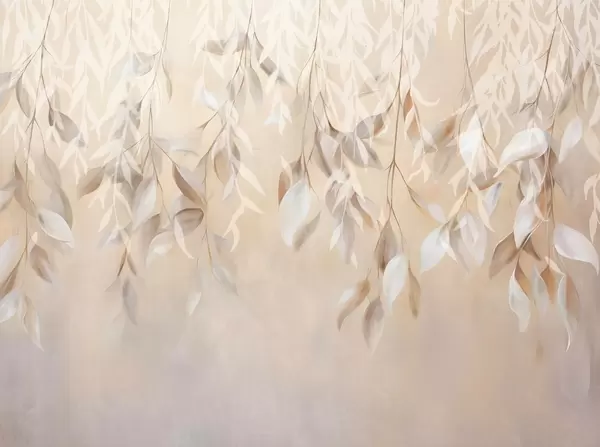 Fototapeter Hengende teksturerte hvite og beige blader med en myk fargepalett, fersken, grå og hvit delikat bakgrunn Nr. w09136