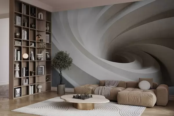 Fototapeter Abstrakt, strukturert virvel av hvite og beige lag som skaper en virveleffekt, dynamisk komposisjon, moderne minimalistisk design Nr. w09144