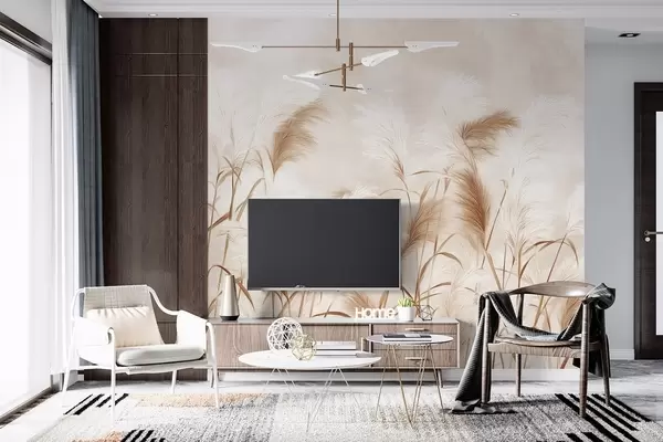 Fototapeter Elegant pampasgress blomstrer i myke beige og melkeaktige toner Nr. w09150v1