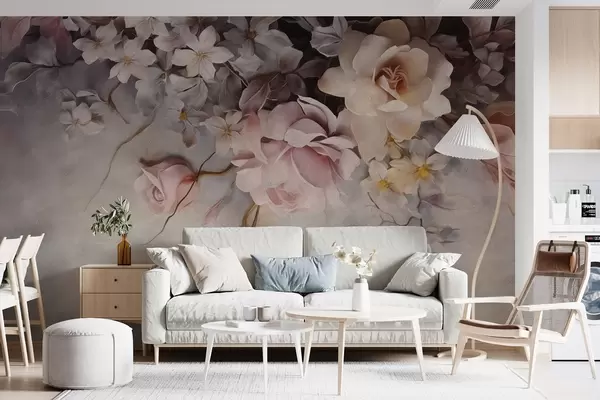 Fototapeter Store blomster henger nedover veggen på en betongbakgrunn Nr. w09184