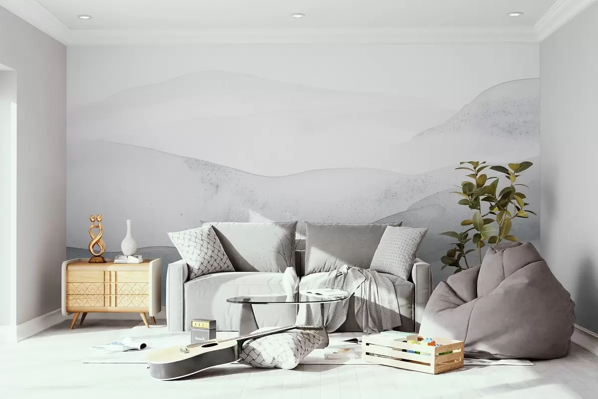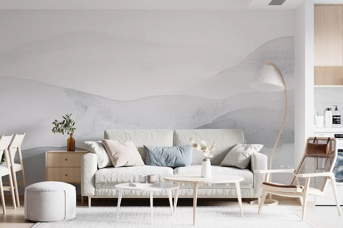 Fototapeter Minimalistiske, tåkete fjell i duse blåtoner Nr. w09223v2