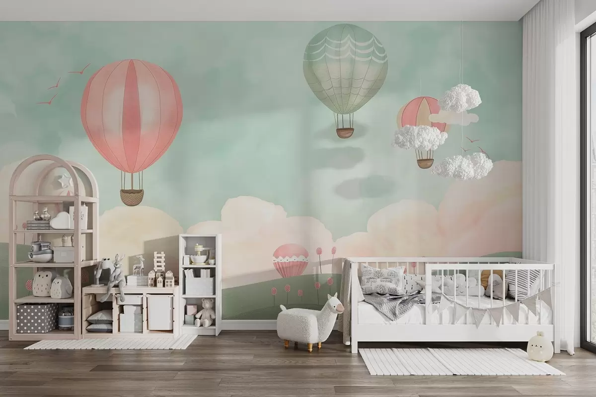 Fototapeter Varmluftsballonger over åser med skyer Nr. w09228