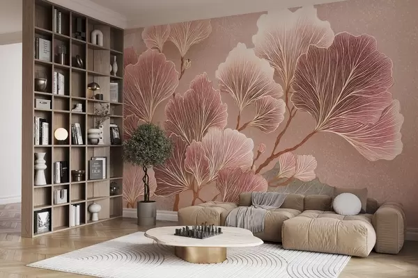Fototapeter Gren av blader i rosa og lilla nyanser Nr. w09249