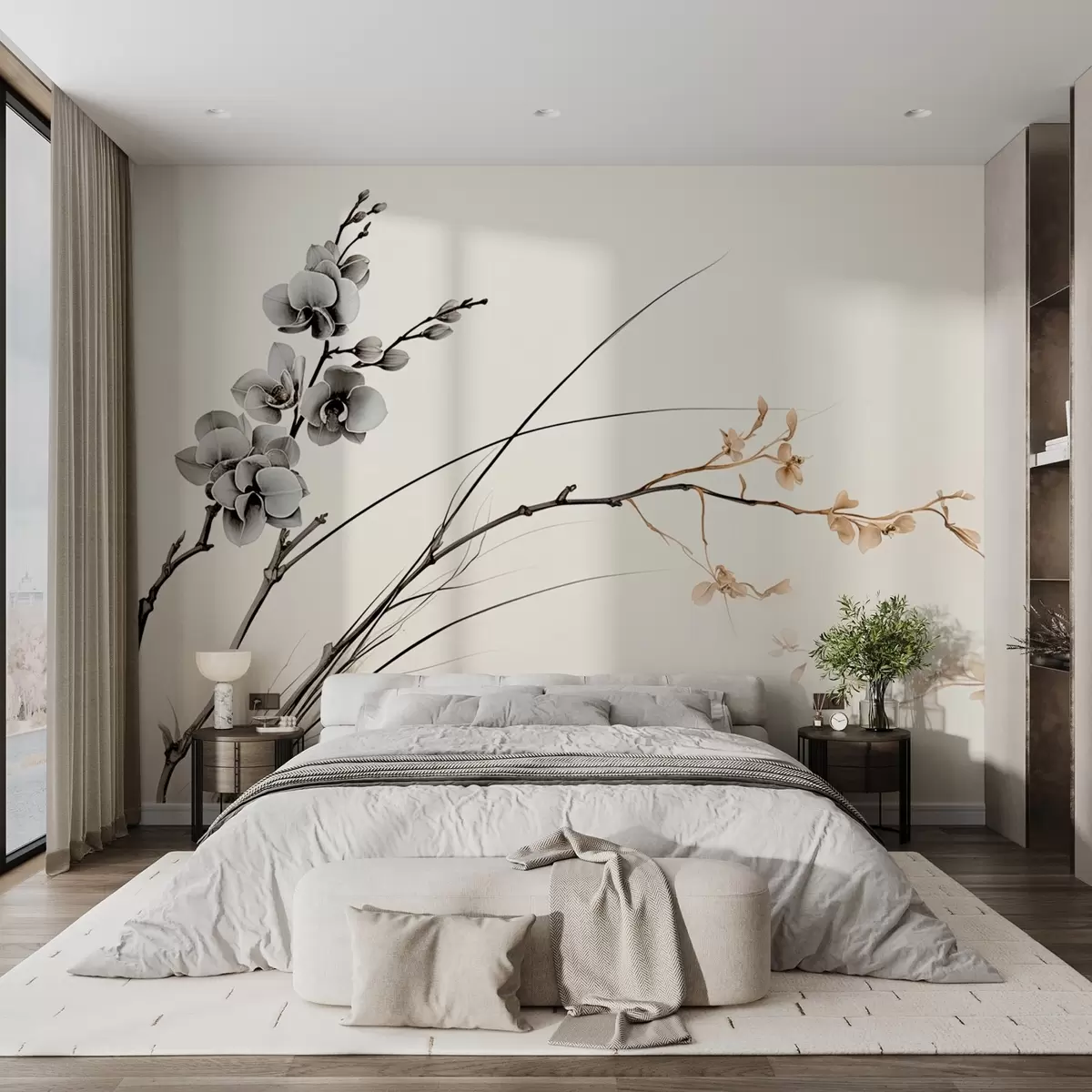 Fototapeter Minimalistisk orkidegren i myke sepia- og gråtoner Nr. w09250