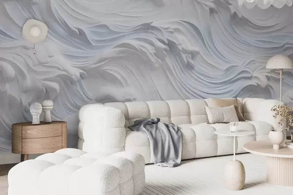 Fototapeter Hvite og lyseblå abstrakte havbølger med skum, som flyter fra venstre mot høyre, dynamisk og strukturert trykk Nr. w09266
