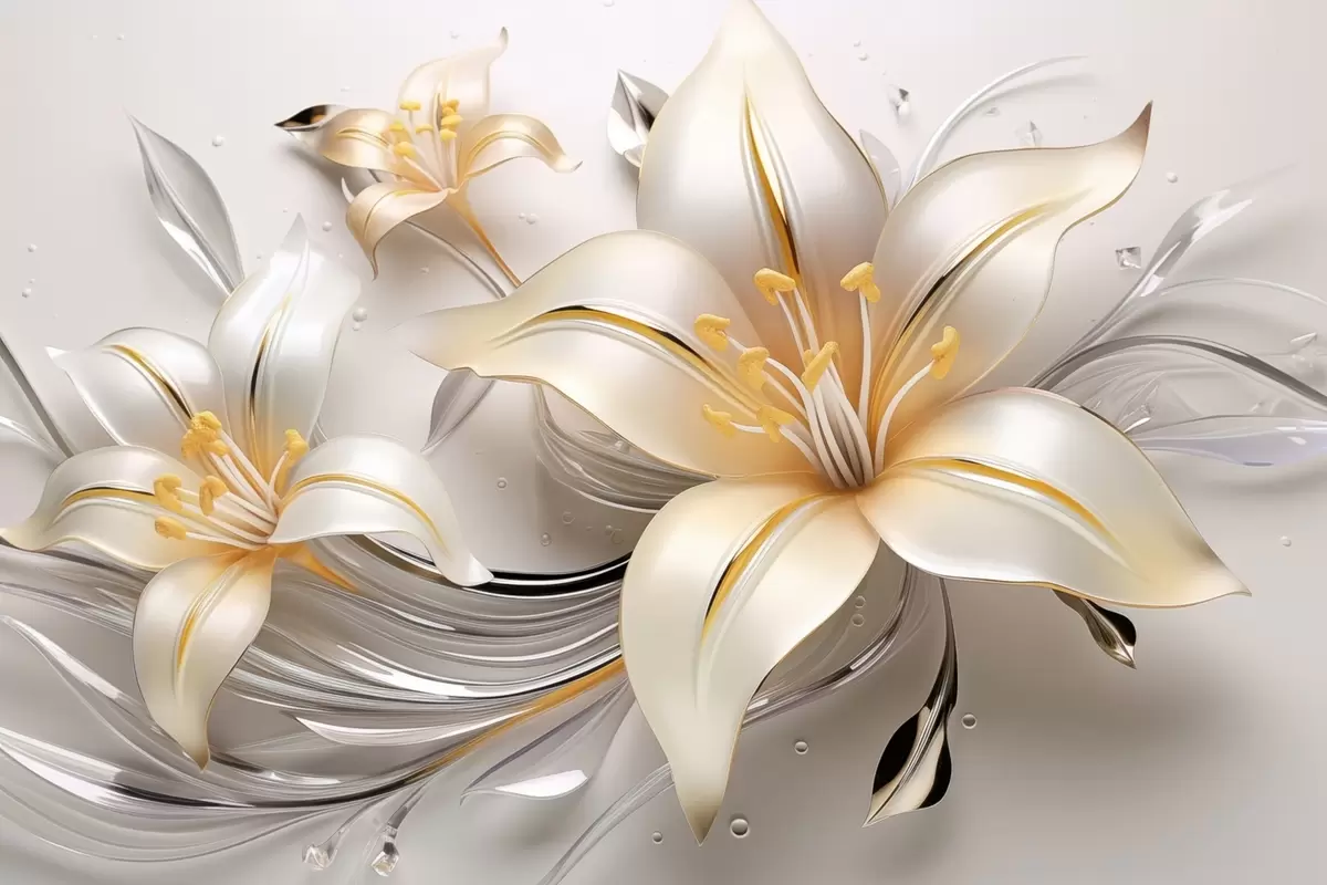 Fototapeter Gule liljer med 3D-effekt på en lys bakgrunn Nr. w09278