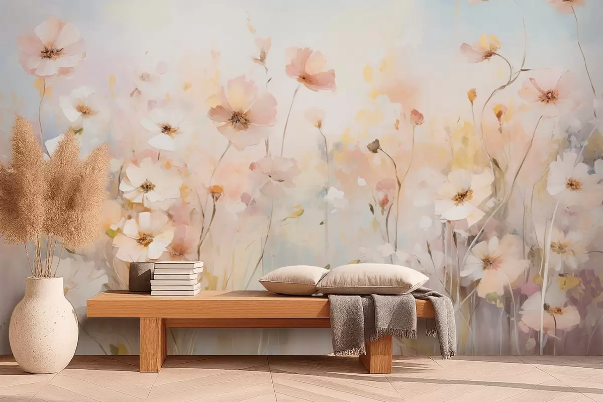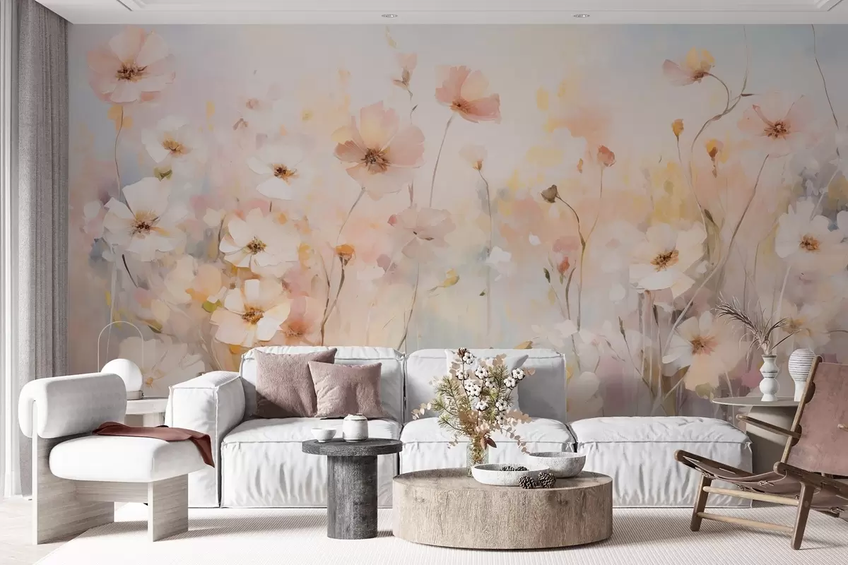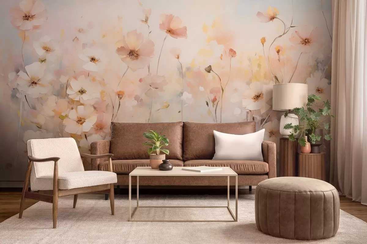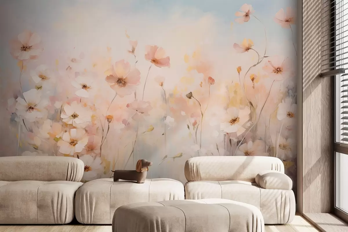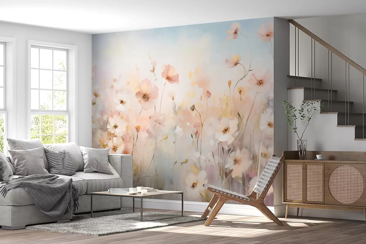 Fototapeter Villblomster i pastellfarger i akvarellstil Nr. w09280