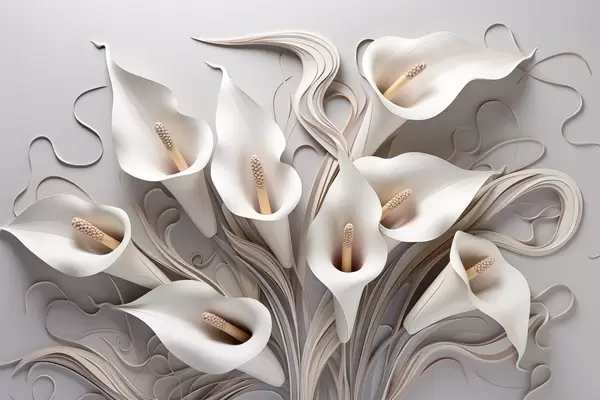 Fototapeter Volumetriske callaliljer i kremfargede toner med 3D-effekt Nr. w09281