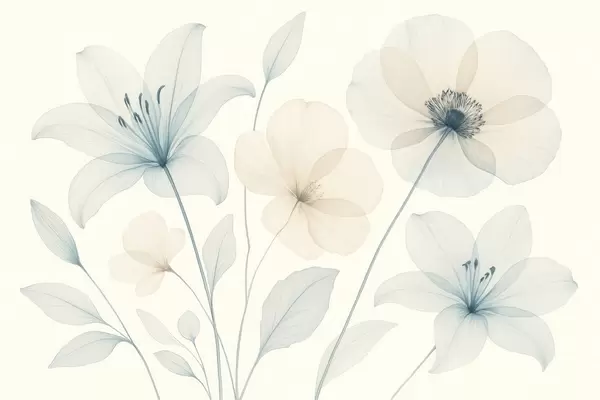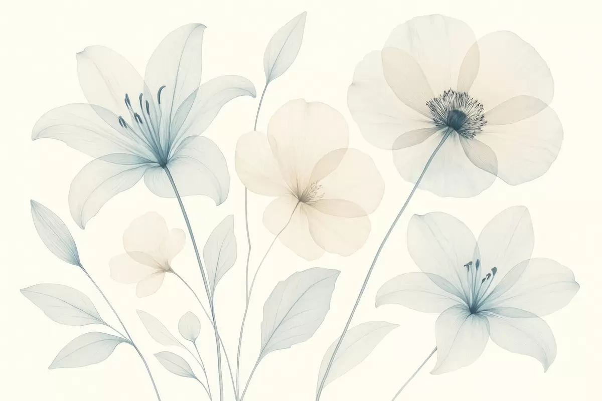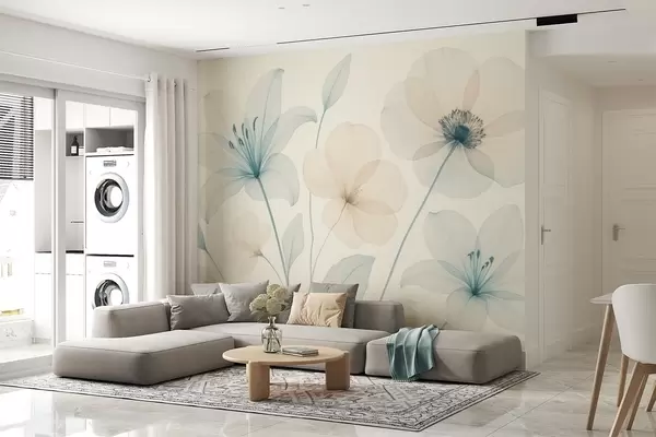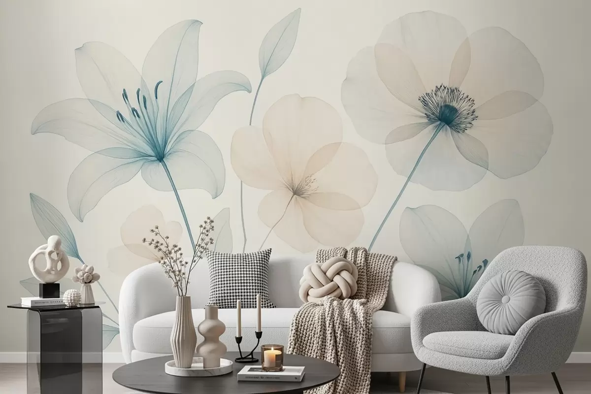 Fototapeter Delikate blomster i pastellblå og kremfarget akvarellstil Nr. w09287