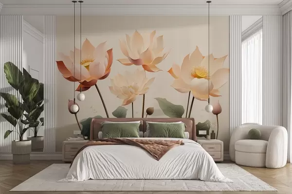 Fototapeter Elegante lotusblomster i en mild pastellfarge Nr. w09306