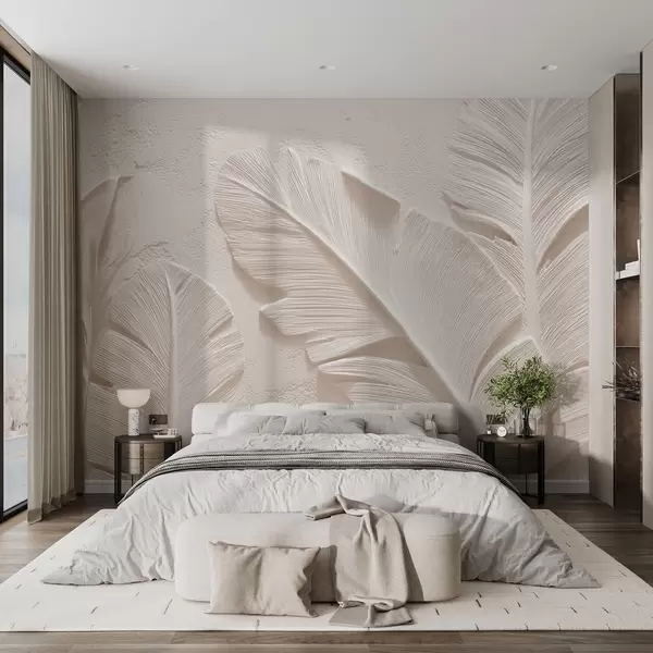 Fototapeter Relieffblader i varme beige-sandtoner Nr. w09307v1