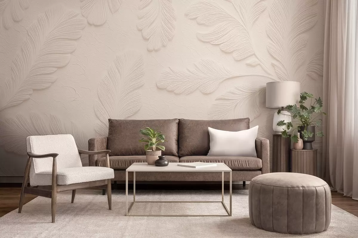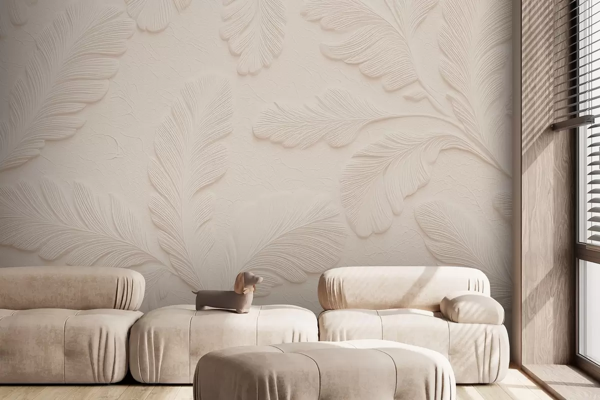 Fototapeter Pregede blader på en lys bakgrunn med en sprukket effekt Nr. w09309