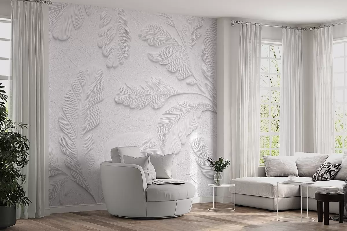 Fototapeter Relieffblader i grått med sprukket tekstureffekt Nr. w09309v1