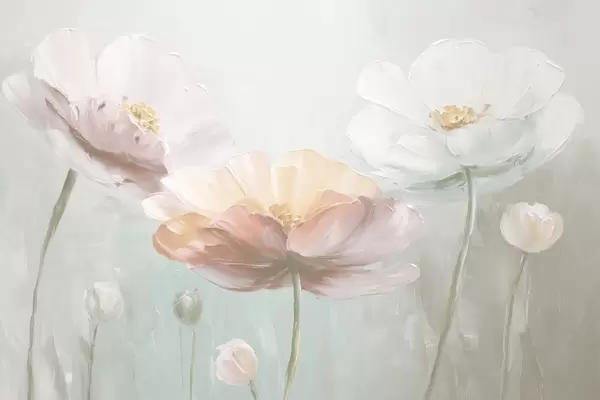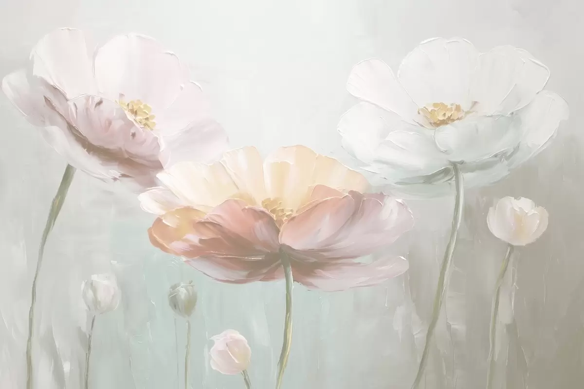 Fototapeter Volumetriske pastellvalmuer i oljemaleristil Nr. w09310v1
