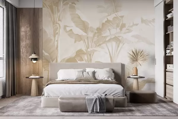 Fototapeter Tropiske bananblader i myke beigefarger Nr. w09311v2