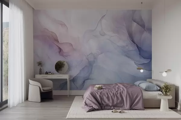 Fototapeter Abstrakt, strukturert maleri med flytende pastellfarger i rosa, lilla og blått som skaper en myk effekt Nr. w09318