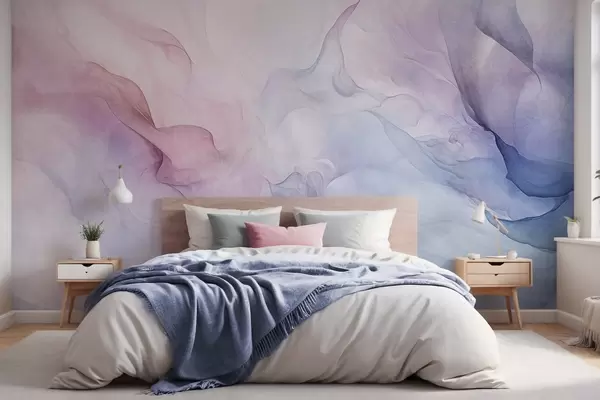 Fototapeter Abstrakt, strukturert maleri med flytende pastellfarger i rosa, lilla og blått som skaper en myk effekt Nr. w09318