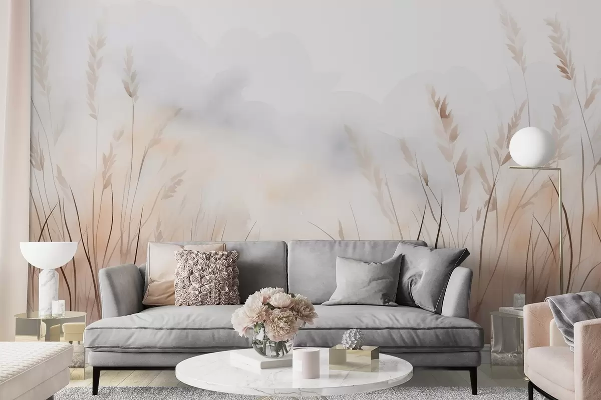Fototapeter Kornører i tåke i myke beige og brune nyanser Nr. w09327