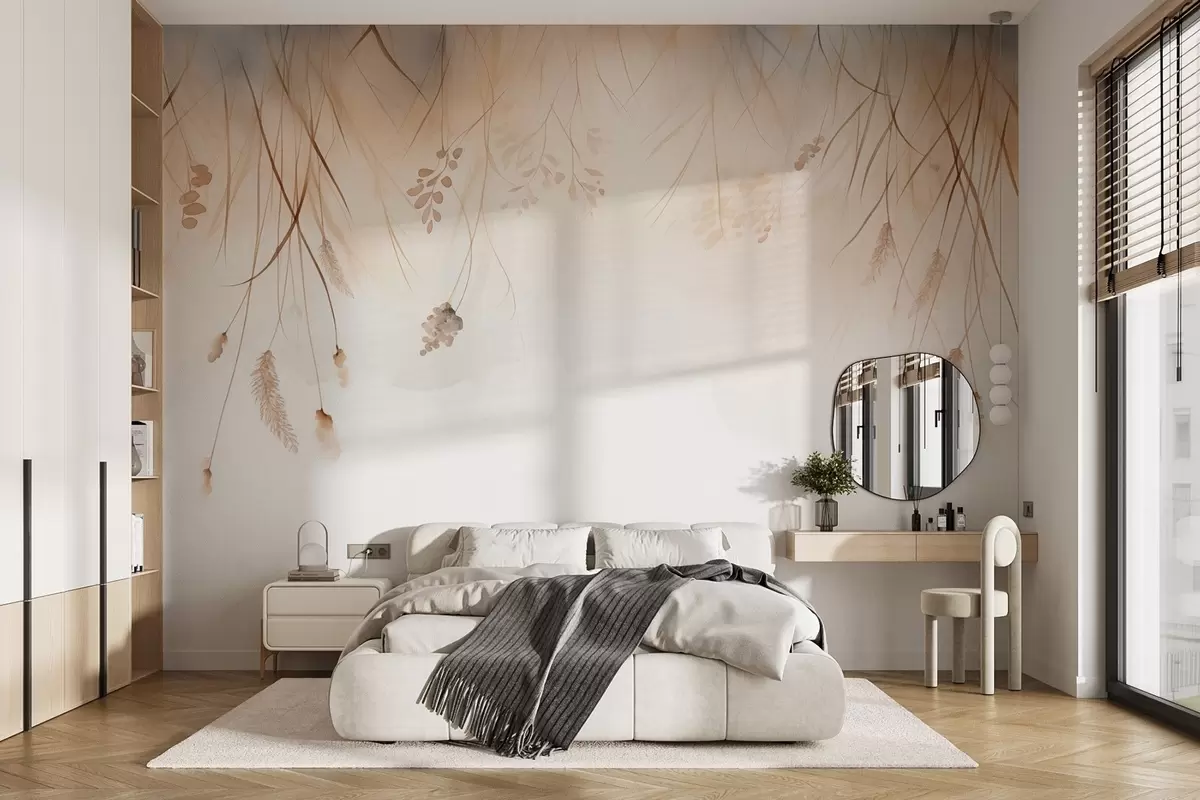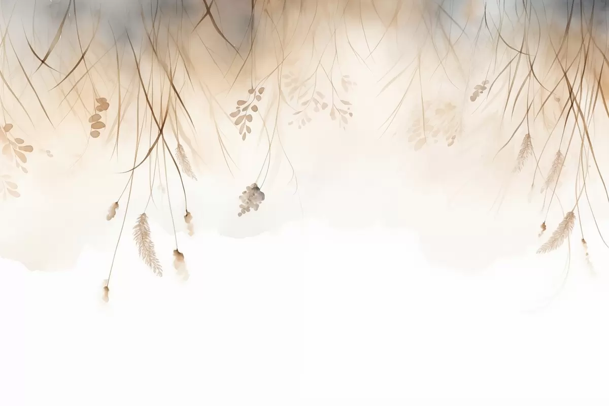 Fototapeter Hengende kattehaler og kornaks i tåke i myke beige og brune nyanser Nr. w09328