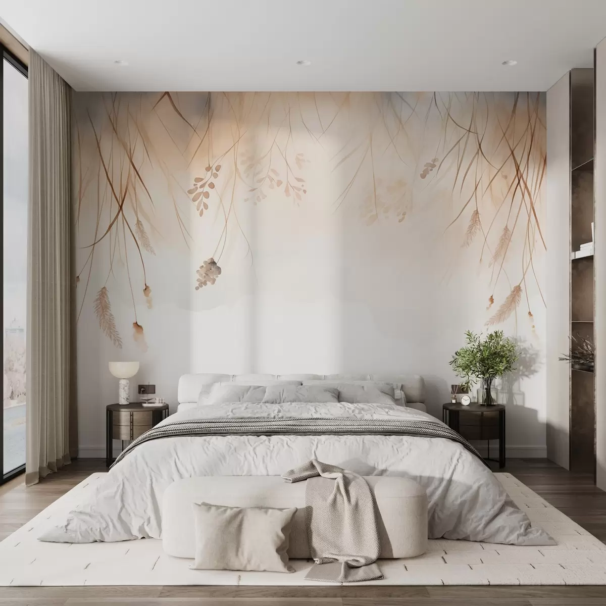 Fototapeter Hengende kattehaler og kornaks i tåke i myke beige og brune nyanser Nr. w09328
