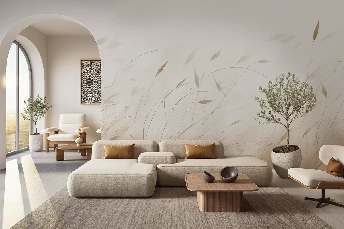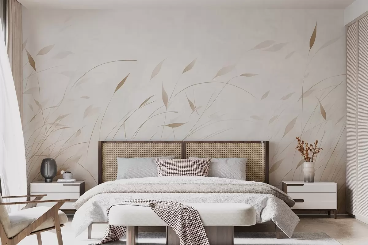 Fototapeter Gress i vinden i akvarellstil i beige nyanser Nr. w09331v1