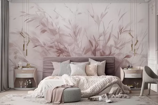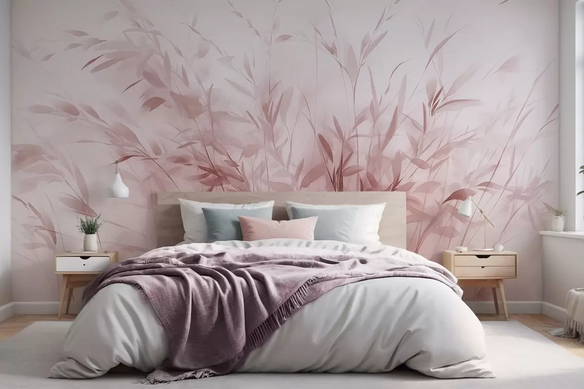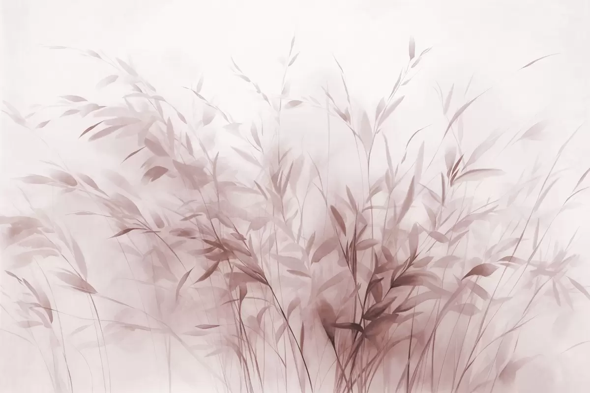 Fototapeter Gress og ugress med tynne blader og stengler, lyserosa farger, myke og delikate penselstrøk, minimalistisk trykk Nr. w09342v2