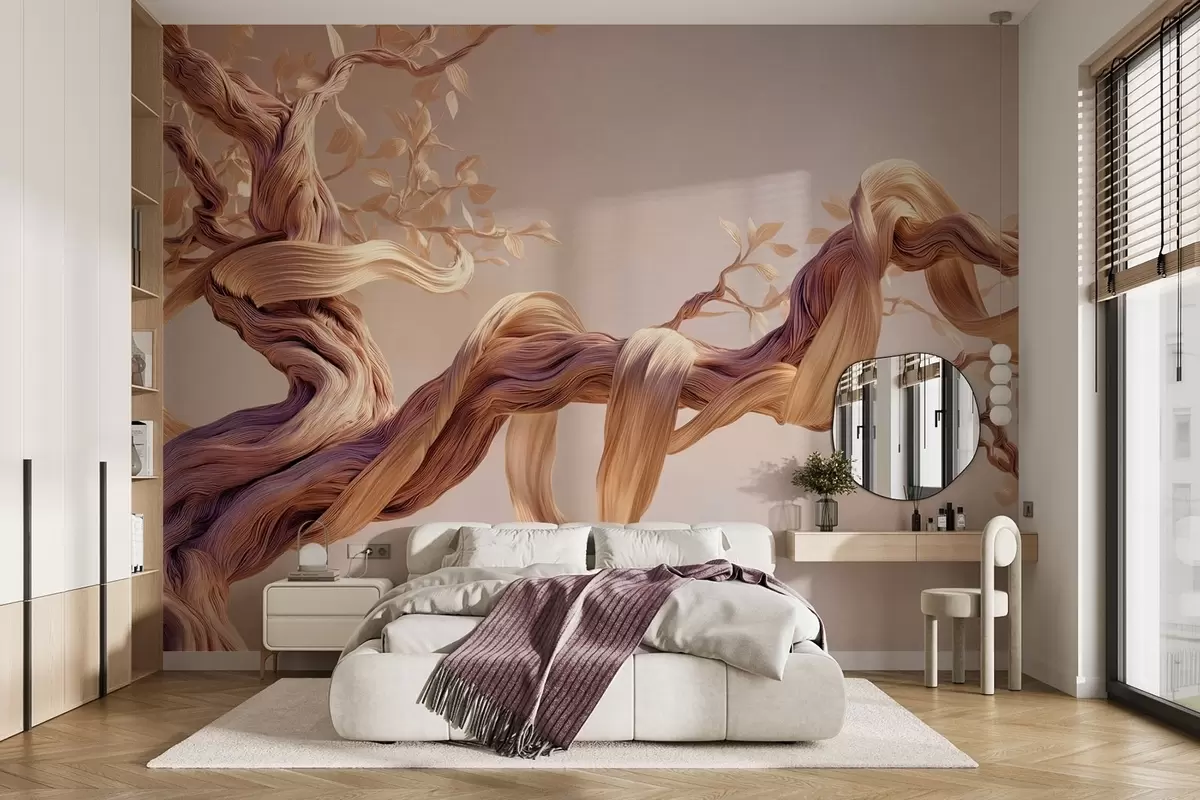 Fototapeter Vridd trestamme med dekorative blader Nr. w09360