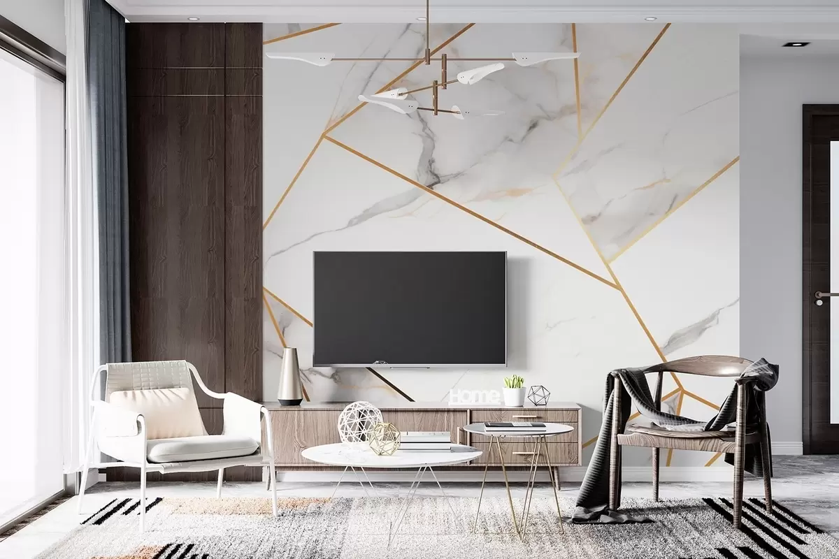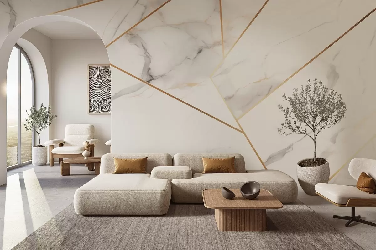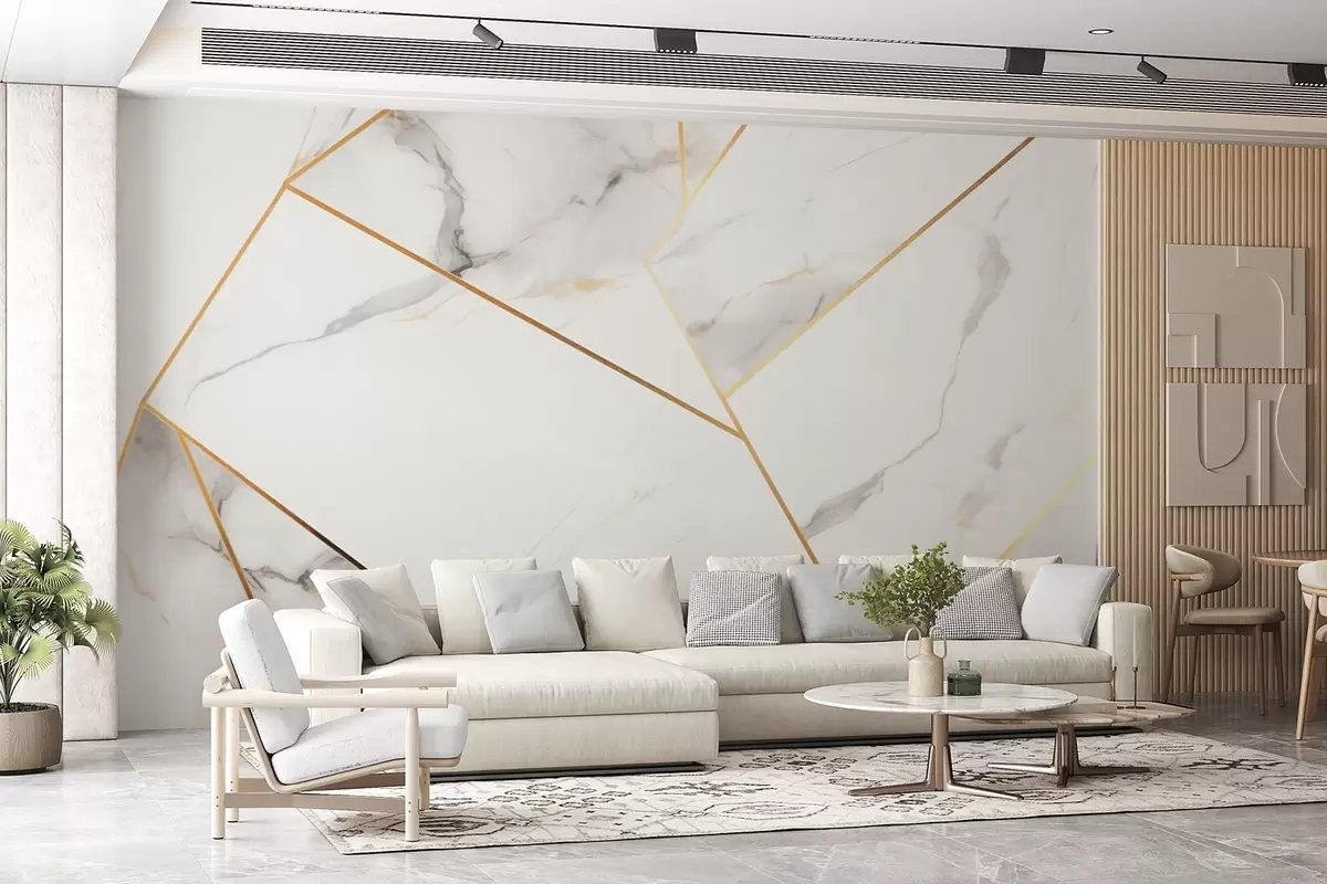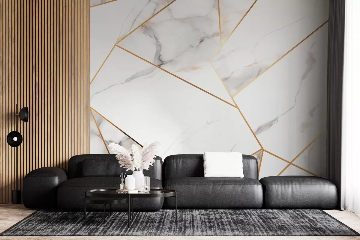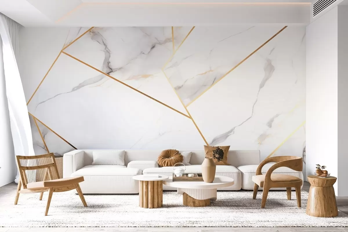 Fototapeter Imitasjon av marmoroverflate med gult geometrisk mønster Nr. w09363
