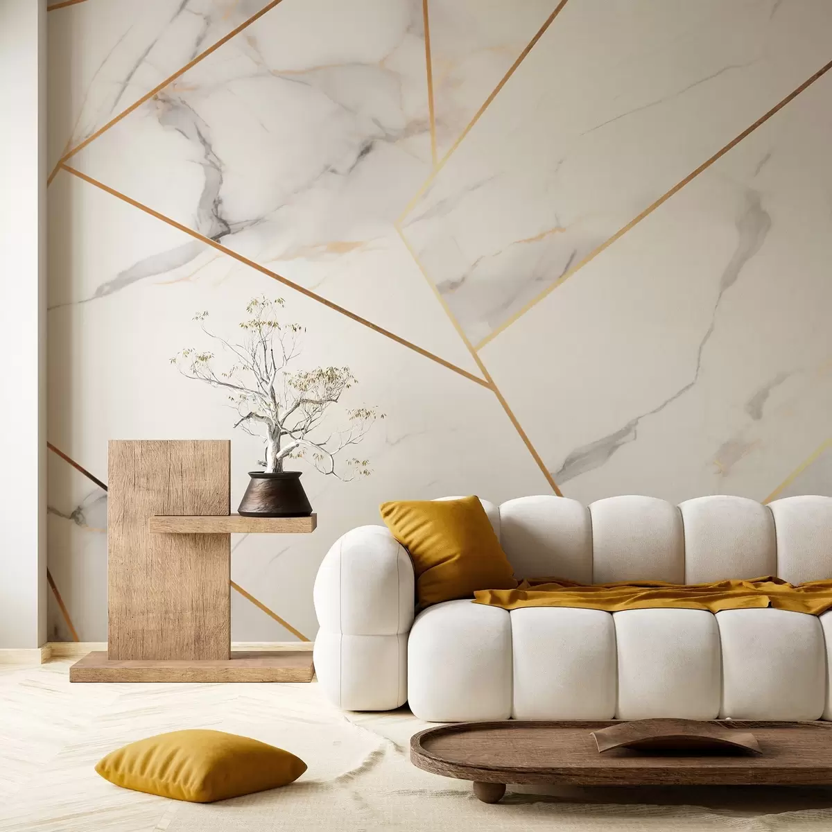 Fototapeter Imitasjon av marmoroverflate med gult geometrisk mønster Nr. w09363