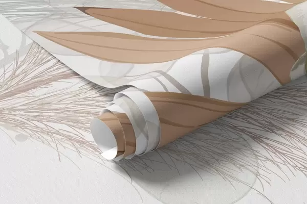 Fototapeter Pampasgress, eukalyptus, tropiske blader og orkideer på hvit bakgrunn, pastellfarger Nr. w09366