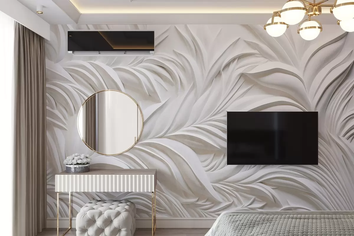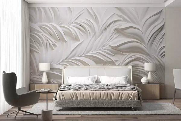 Fototapeter Abstrakte hvite blader og blomsterelementer med struktur, minimalistisk estetikk Nr. w09378