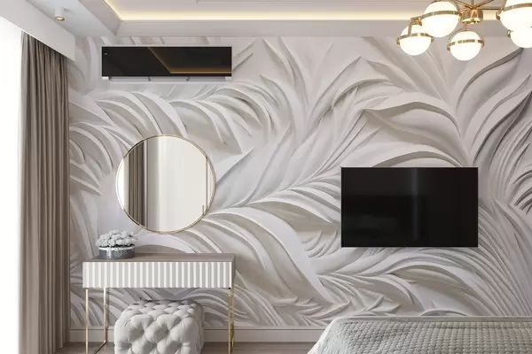 Fototapeter Abstrakte hvite blader og blomsterelementer med struktur, minimalistisk estetikk Nr. w09378