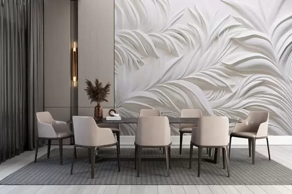 Fototapeter Abstrakte hvite blader og blomsterelementer med struktur, minimalistisk estetikk Nr. w09378