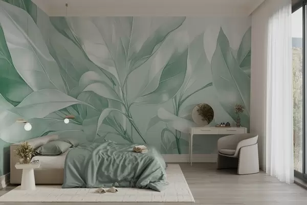 Fototapeter Magnoliablade med hvite og grønne toner, myk belysning, elegant komposisjon, detaljerte bladnerver, kunstneriske penselstrøk Nr. w09385v1