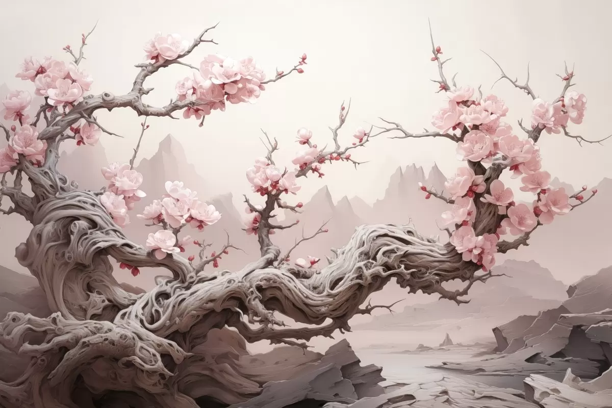 Fototapeter Vridd trestamme med blomstrende rosa sakura Nr. w09388