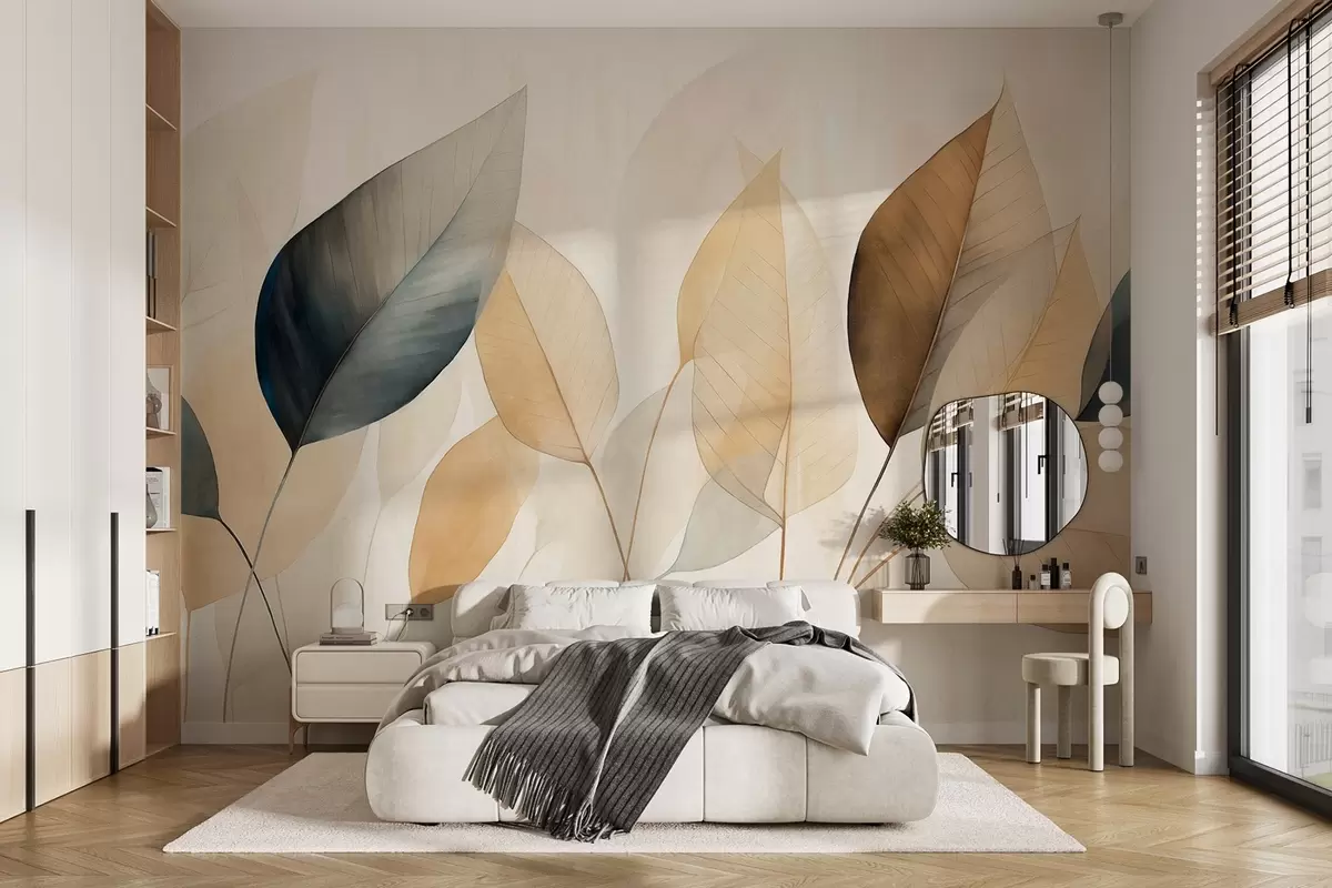 Fototapeter Teksturert maleri som imiterer blader i nyanser av brunt, gult og grått, med delikate årer og stilker Nr. w09400