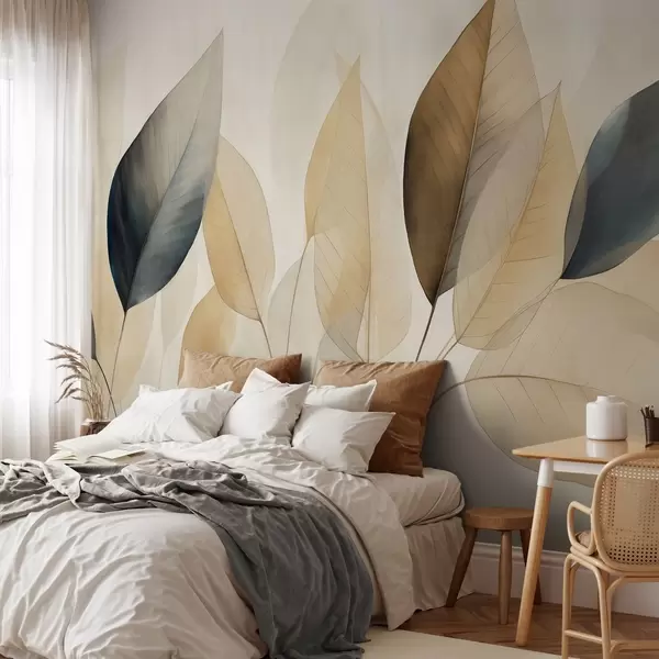 Fototapeter Teksturert maleri som imiterer blader i nyanser av brunt, gult og grått, med delikate årer og stilker Nr. w09400