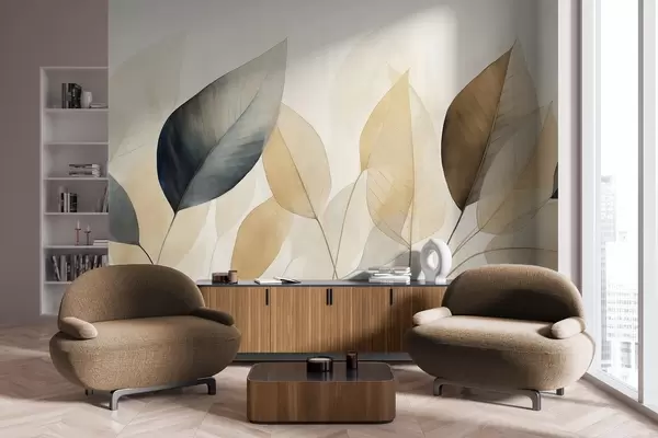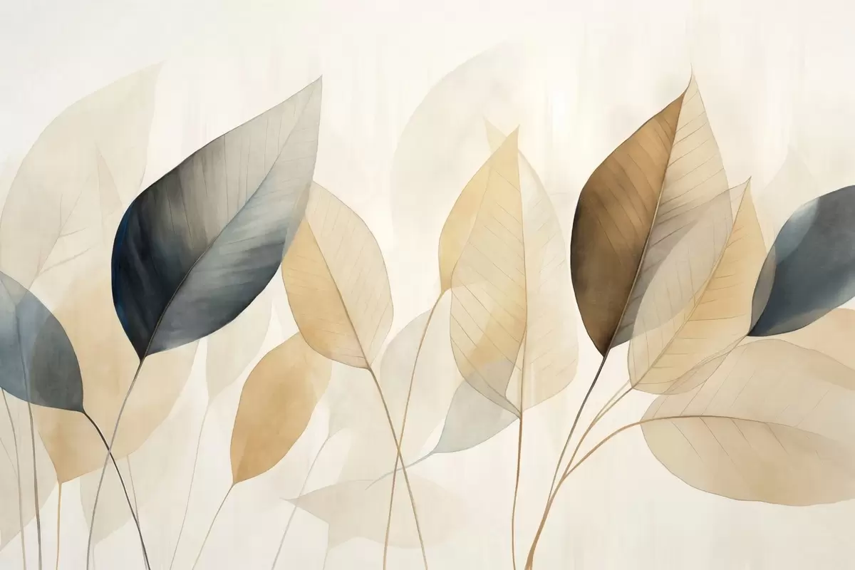 Fototapeter Teksturert maleri som imiterer blader i nyanser av brunt, gult og grått, med delikate årer og stilker Nr. w09400