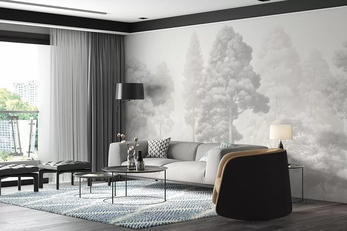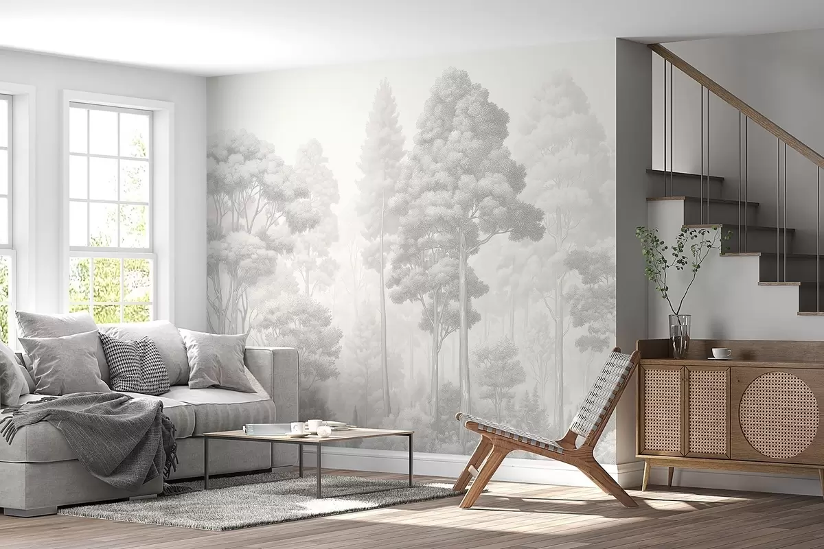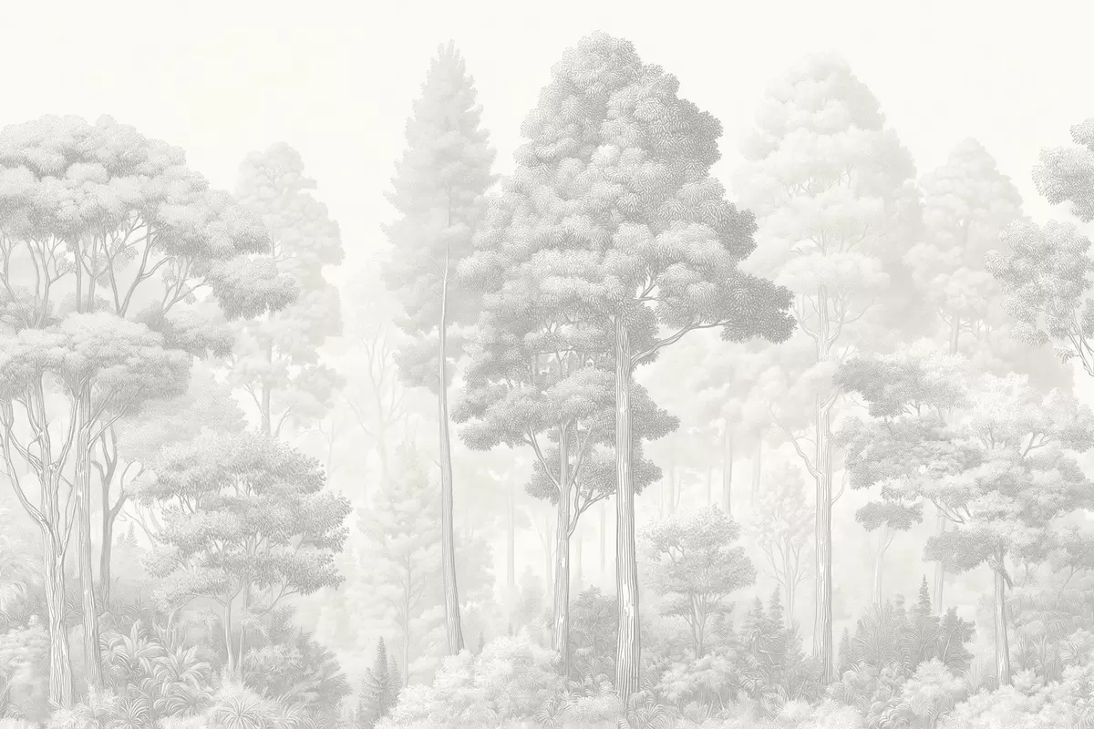 Fototapeter Kunstnerisk skoglandskap i teknikken svart-hvitt grafisk skravering Nr. w09411