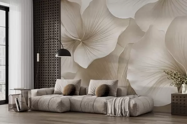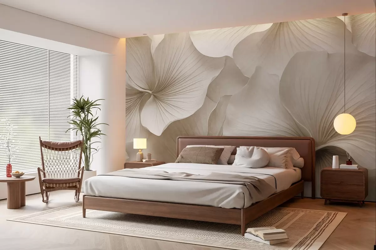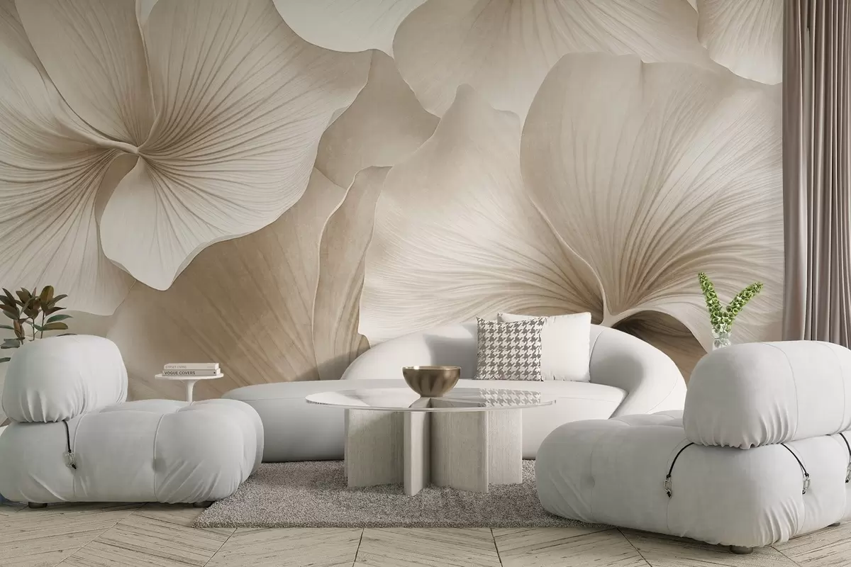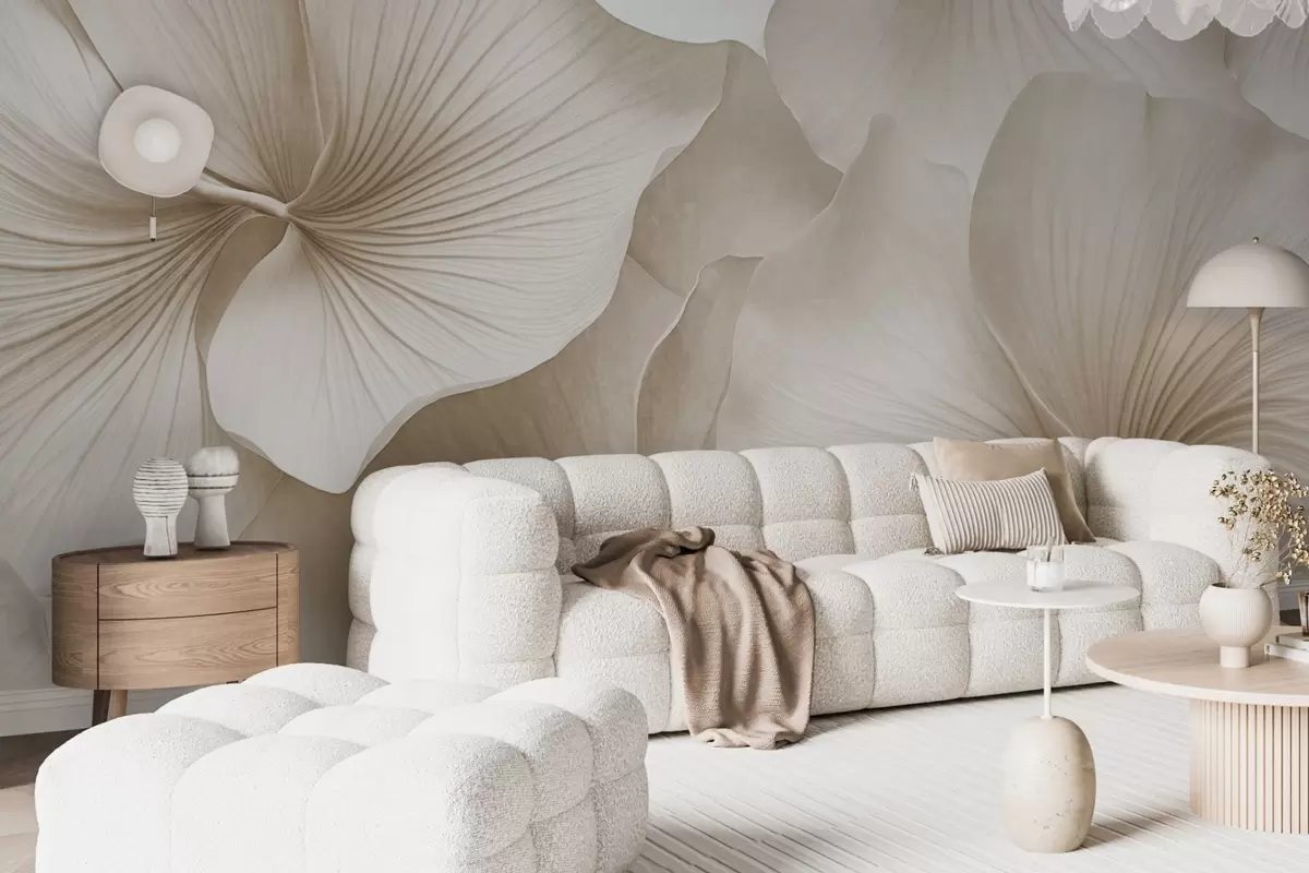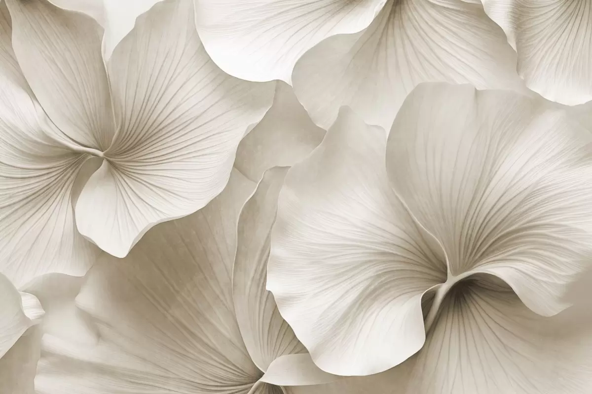 Fototapeter Hvite og beige gingko-blader, myk tekstur, abstrakt blomsterbakgrunn, minimalistisk moderne stil Nr. w09421v1